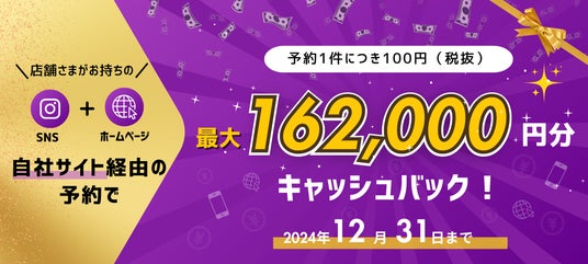 2024年12月31日までの新規ご契約で予約1件につき100円、最大162,000円分キャッシュバック