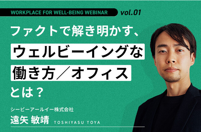 CBRE(日本本社:東京都千代田区丸の内)は本日、パナソニック株式会社エレクトリックワークス社(以下 パナソニック)と共同で制作した、ホワイトペーパー『WORKPLACE FOR WELL-BEING 健康的で生産性高く働くワークプレイスの作り方』をCBRE物件検索サイト「PROPERTY SEARCH(プロパティサーチ)」にて公開しました。