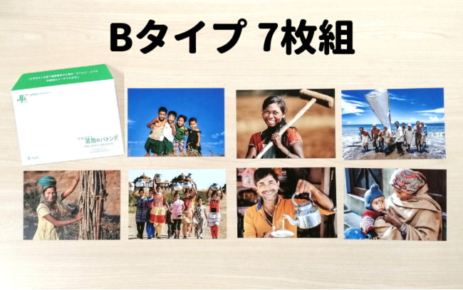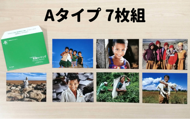 カレンダーは、壁掛けと卓上の2種類。カレンダー写真をつかったポストカードA/Bセット、また、JVCの活動地の子どもたちの干支のイラストをつかったスマイル年賀状をご用意しています。