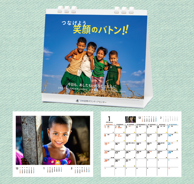 収益がNGO「日本国際ボランティアセンター(JVC)(東京都台東区、代表理事:今井高樹)」の世界各地で活動への支援となり「気軽にできる」と多くの方にご協力いただいている「JVC国際協力カレンダー」。プロの写真家による世界各地の笑顔の写真たちが暮らしを彩ります。