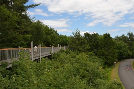 空中回廊公園の入口から「森の体験舎」や「大草原の家」までをつなぐ空中の散歩道「空中回廊」も大町・松川地区の名物です。