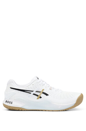 このカプセルコレクションは、ASICSとのコラボレーションにより誕生。マッテオ・ベレッティーニがコート上でデビューさせたGEL-RESOLUTION(TM) 9テニスシューズのエクスクルーシブデザインの登場により、コレクションが補完されます。時代を超越したホワイトを基調に、アッパーには特徴的なキャメルとブラックのアクセント、後部のアウトソールには大胆なBOSSのロゴがあしらわれています。このシューズには、アシックスのシグネチャーであるDYNAWALL(TM)テクノロジーが採用され、ベースラインプレイヤー(後衛)の左右の動きをサポートしながら、アッパー内側の親指と小指部分にバンドを配した構造で足を快適に固定し、柔軟なアッパーが動きを最大限に引き出します。ASICS×BOSS×Matteo Berrettiniのコラボレーションは、昨年の2023年6月と8月に発売され好評を博した同スニーカーのカラーバリエーションに続く、第3弾となります。