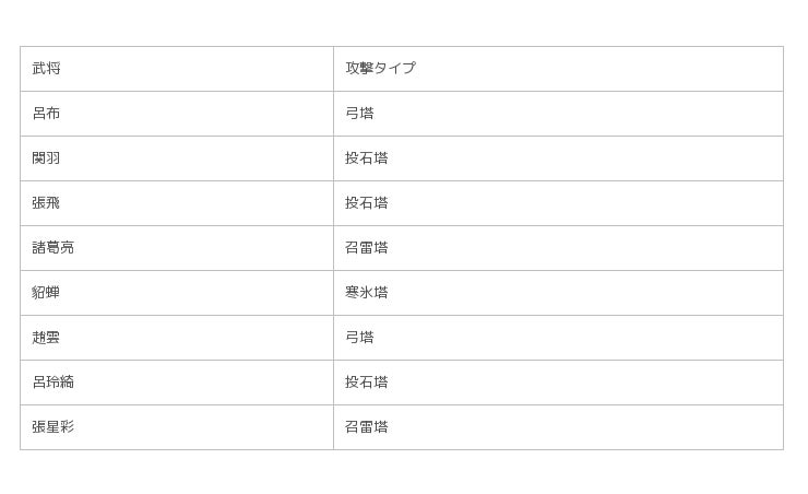 この8名の武将は4種類の攻撃タイプ全てを網羅しています。