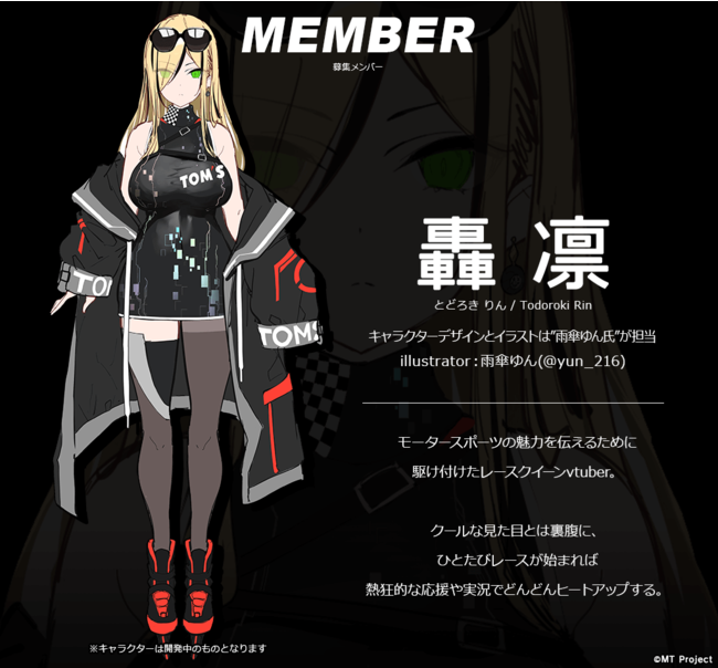 『MTプロジェクト』とは、「Mobility x YouTube」を意味し、バーチャルレースクイーンを起用しモータースポーツの魅力を伝え、モータースポーツファンを増やすことを目的としたプロジェクトとなります。