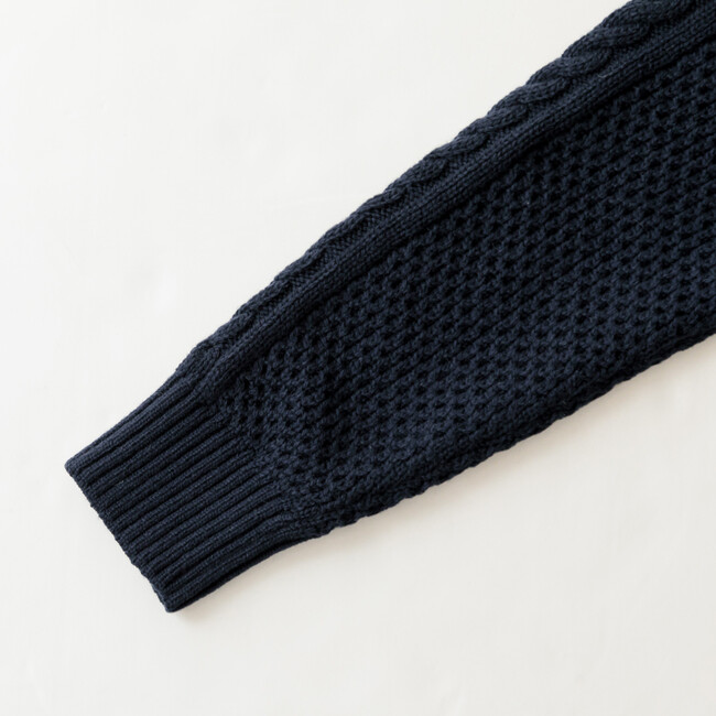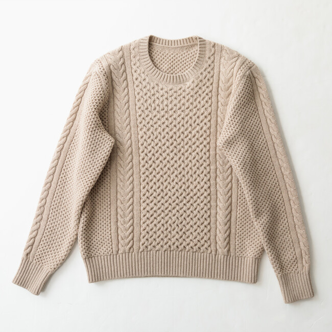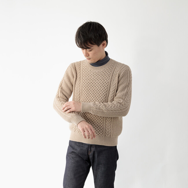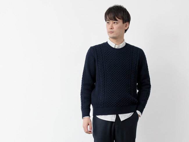変化のあるケーブル編みニットは、コーディネートに素敵なアクセントを付けてくれます。