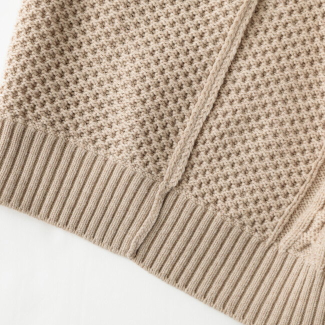 今回のニットは、新潟県五泉市のニット工場・川島の職人の経験値によって、上品な印象のケーブル編みに仕上がりました。