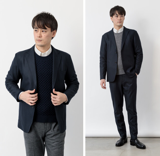 ※ただし、ジャケットをタイト目に着ている場合は、腕回りがややタイトになります。