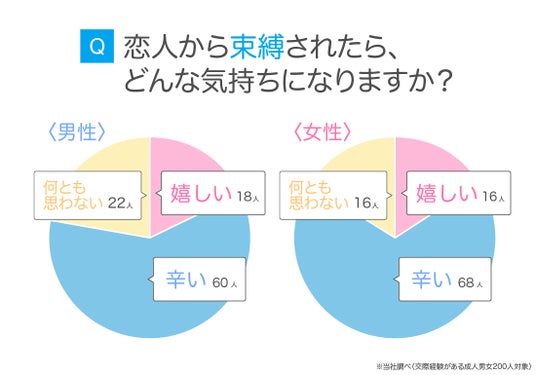 「恋人から束縛されたら、どんな気持ちになりますか?」というアンケートをとったところ、最も多い回答は「辛い」でした。