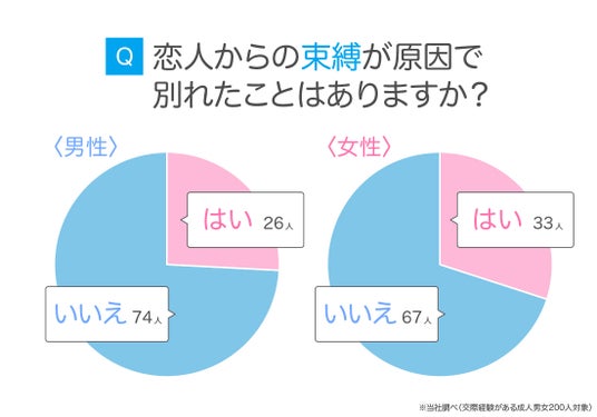 「恋人からの束縛が原因で別れたことはありますか?」と尋ねたところ、経験がある人は約3割でした。