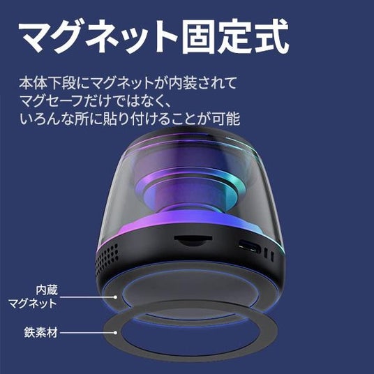 クリアデザインでおしゃれなLEDライト。マグネット内蔵でmagsafe対応機種にピタッとくっつくBlueToothスピーカー!