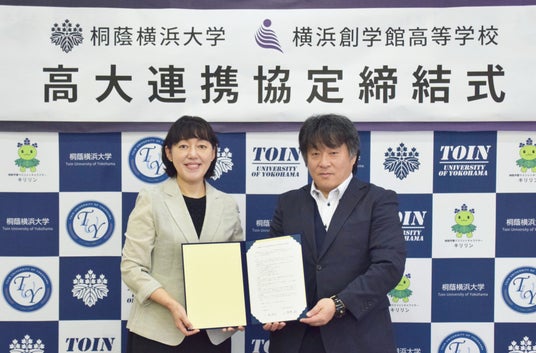 桐蔭横浜大学(神奈川県横浜市青葉区、学長:森 朋子)、横浜創学館高等学校(神奈川県横浜市金沢区、校長:廣瀬 裕)は、相互に連携し交流を深めることにより、両校の教育内容の充実と学生及び生徒の資質向上を図ることを目的として高大連携協定調印式を行いました。