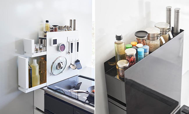 コンロの横に調味料を隠して収納。