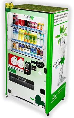 自動販売機のルーフ(屋根)部分に緑化シートを設置し、