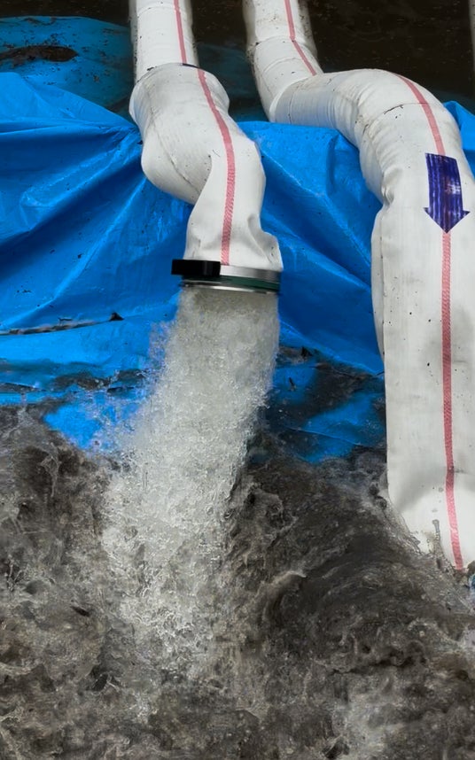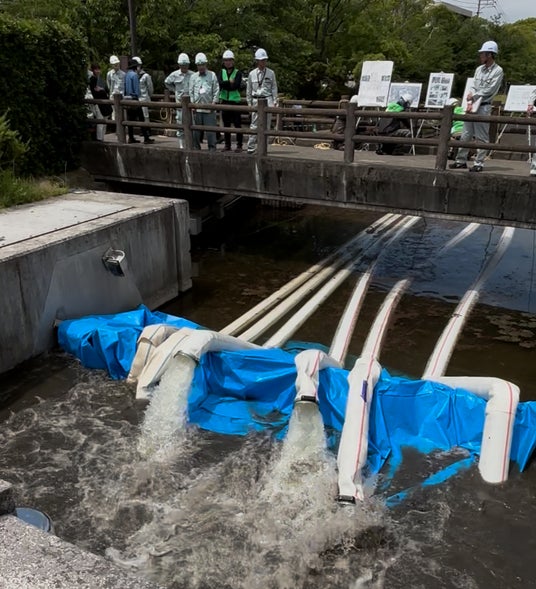 排水ポンプ車による「強制排水」を行い、周辺環境への影響を調査しながら、県と市の連携による課題解決に取り組み、水害に強いまちづくりを進めていきます。