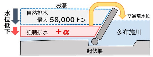 ※水位低下により見込まれる調整容量:約6,400トン(25mプール約21杯分)
