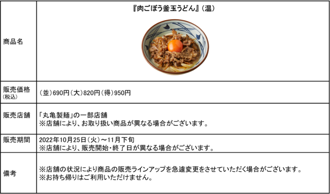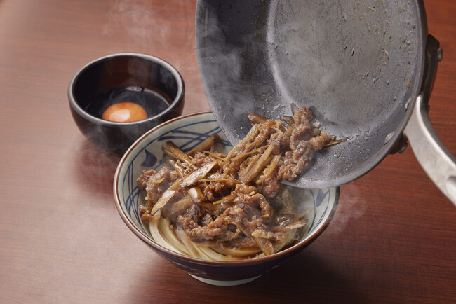焼きたて甘辛牛肉と生玉子が相性抜群な『肉ごぼう釜玉うどん』 ~2022年10月25日(火)から丸亀製麺にて期間限定で販売開始~