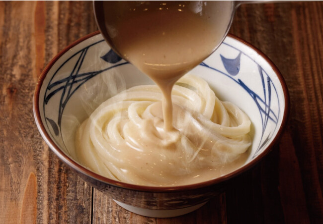 北海道産真昆布や複数の削り節から引く白だしの豊かな風味と、濃厚な胡麻の旨みが感じられるように仕上げました。胡麻ペーストをたっぷりと加えた担々スープは、丸亀製麺ならではの味わい。