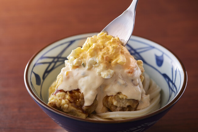 《たまご好きにおすすめ!味わいが異なる2種類の濃厚タルタルソースが食欲そそる『タル鶏南蛮ぶっかけうどん』》