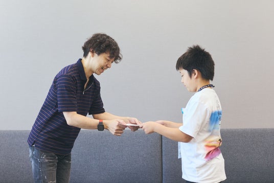 最初は恥ずかしそうにしていたこどもたちも、実際に名刺交換や動画撮影体験を通して、親の仕事の大変さや楽しさを学びながら、笑顔になっていく姿が見られました。