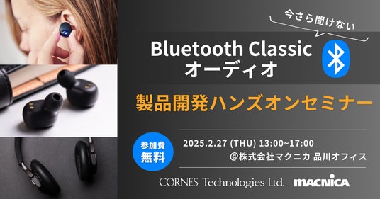 コーンズテクノロジー株式会社(本社:東京都港区、代表取締役社長 西岡和彦)は、2025年2月27日(木)に「今さら聞けない!Bluetooth Classicオーディオ製品開発ハンズオンセミナー」を開催いたします。本セミナーは、半日でBluetooth Classicオーディオの基礎を振り返りながら、簡単に開発を始められる対面式のハンズオンセミナーです。