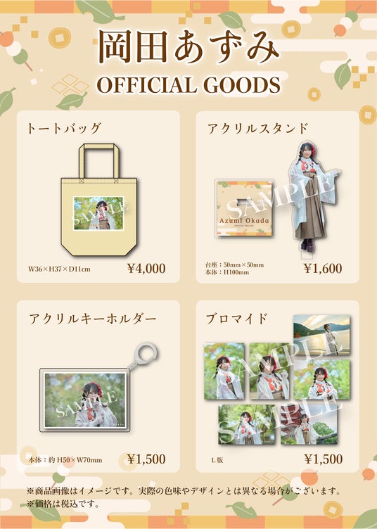 今回販売されるアイテムは、すべて岡田あずみ本人のセルフプロデュース。