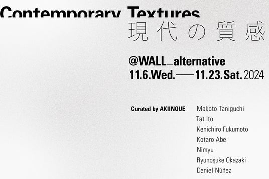 WALL_alternativeは昨年11月の開業以来、「アート/音楽を軸に多様なカルチャーを横断し、新しいムーブメントが生まれる拠点」であることをコンセプトに掲げ活動してきました。本展「現代の質感」は、NANZUKA出身の気鋭ディレクター井上彰人が2025年にオープンするアートギャラリーAKIINOUEとの協働で企画した展覧会です。