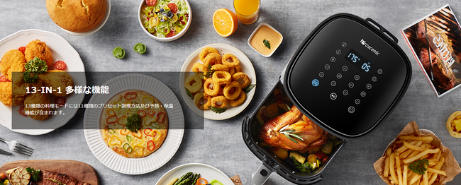 5L大容量、家族全員の胃袋を満足できます。グリル、電子フライヤー、オーブンレンジなどの機能を含み、一台多役の優れものです。