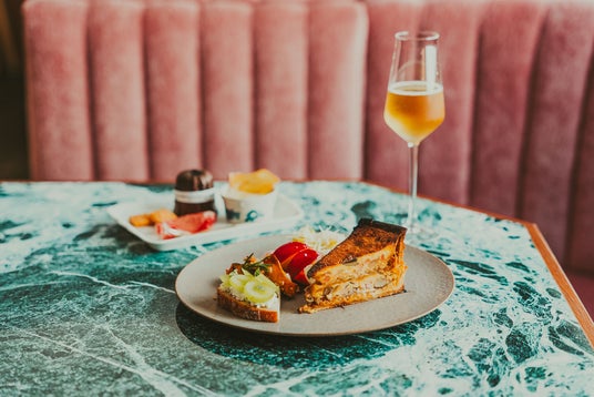KURAMAE CANNELE初のランチは、メインを「カヌレ専用卵のキッシュ」または「牛肉のボロネーゼラザニア」からお選びいただけます。そして自家製のシャルキュトリーと季節のフルーツや野菜を使用したお惣菜、季節の冷製ポタージュ、ティーソーダがセットになっています。