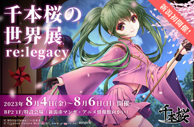 株式会社Gugenka(代表取締役CEO 三上昌史)は、「新潟まつり 花火大会 初音ミク 夜空プログラム」の企画イベントの一つである、「千本桜の世界展 re:legacy」を2023年8月4日(金)~8月6日(日)に新潟で初開催すること発表し、本展示会の前売りチケットの販売を本日より開始いたしました。