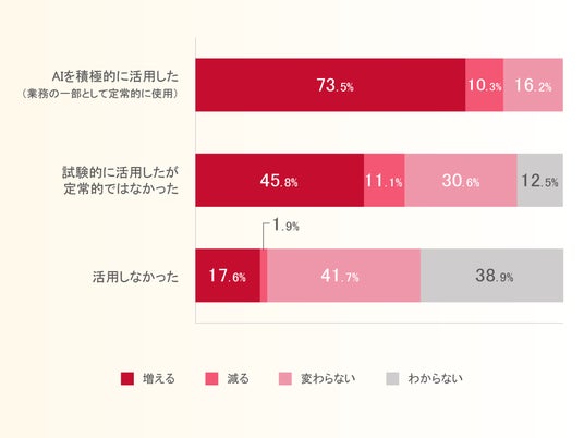 - AI積極活用層の7割以上が2025年にAIを業務で活用する頻度が「増える」と回答