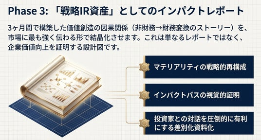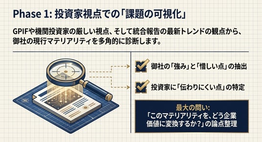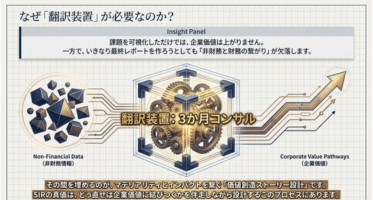 これにより、社内に分散しがちなサステナビリティ、IR、経営企画の議論を統合し、企業価値向上へ向けた一貫した説明軸を構築します。