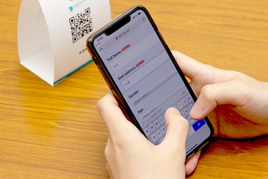 「ハコボウヤ」は、外国人観光客が店頭などでお土産を配送する際に利用できるサービスです。店頭に設置しているQRコードをスマートフォンで読み込み、住所等配送先の情報を入力し、店頭側のアプリで読み込むことで、海外配送用の伝票を作成することができます。