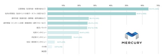 調査結果から、就活生がSNSを通して最も知りたい情報は企業情報(仕事内容・事業内容)と社内の雰囲気(社内イベントの様子・オフィス紹介など)であることが分かりました。
