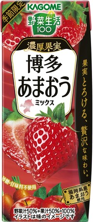 カゴメ株式会社(社長:山口聡、本社:愛知県名古屋市)は、「野菜生活100 濃厚果実 博多あまおうミックス」を2023年11月21日(火)から2024年2月中旬まで期間限定にて全国で発売いたします。(在庫がなくなり次第、販売終了)