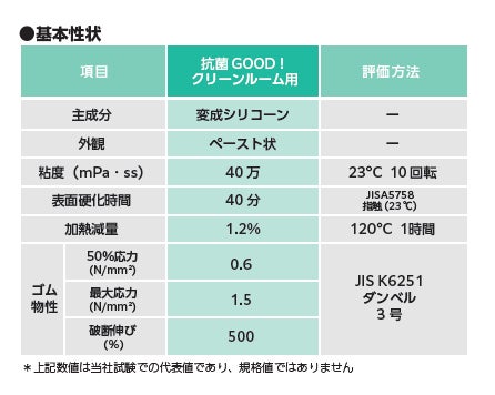 「抗菌GOOD!クリーンルーム用(R)」は、通常の変成シリコーン系シーリング材の施工性、伸び、接着性を保ちながら、電子材料を汚染するアウトガス成分を抑制したシーリング材です。