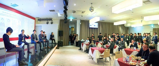 後半は立食形式のネットワーキングが行われ、フリーフロードリンクやブッフェを楽しみながら、国内外の参加者が積極的に交流。