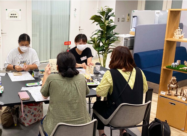 プログラムの最後は、新商品のウッドパズルを一足先に体験。普段はミニチュアハウスしかつくったことがないという方も、お隣の方と教え合いながらつくっていました。