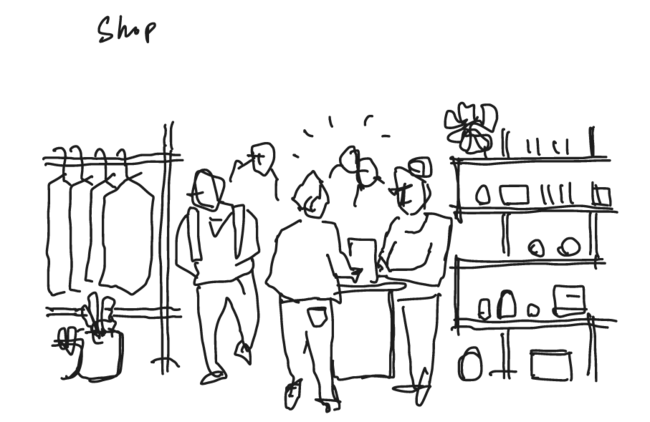 これまでリアルゲイトが培ってきたシェアオフィスのオペレーションノウハウを活かし、リテール分野にも「シェア」のカタチを構築します。出店者が自身のアイデンティティーを気軽に表現できるように様々なデザイン什器を「シェア」し、またフロア利用者とコミュニティーが「シェア」できる空間を配置することで、新たなリテール空間の在り方「シェア型リテールコミュニティー」を提案します。