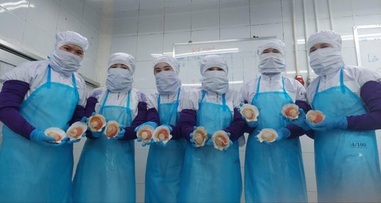 ベトナム現地にて殻むきを行った北海道産ホタテ