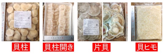 今回製造した商品:貝柱、貝柱開き、片貝、貝ヒモの4種