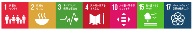 先進国では健康に配慮したメニューを推進し、開発途上国では子どもたちに学校給食を届けることを通じて、以下7つのゴール達成に貢献。