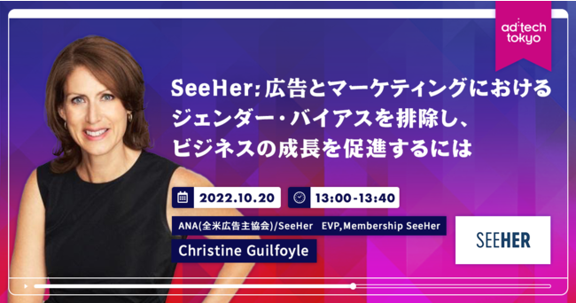 SeeHerは、マーケティング、広告、メディア、エンターテインメントにおける女性や少女の正確な描写を増やし、彼女たちがありのままの自分、そしてすべての可能性を見い出すことができるようにするというミッションのもと、マーケター、メディアリーダー、広告会社、業界インフルエンサーが結束している国際的なメンバーシップコミュニティです。全米広告主協会(ANA)が主導し、The Female Quotient(FQ)と連携して、SeeHerは広告とメディアにおける男女平等のための業界の主要な組織となりました。取り組みの成功を計測するため、2016年にSeeHerは、広告や番組におけるジェンダーバイアスを定量化する初の調査手法であるGender Equality Measure (GEM(R))を開発しました。GEM(R)は、世界の広告費の87%を占める20万件以上の広告を測定し、今では世界的な測定基準となっています。SeeHerの取り組み、ソートリーダーシップ、トレーニング、そしてGEM(R)をビジネスの流れに組み込む方法について解説します。広告とメディアにおけるジェンダー平等と交差性は必須であり、それは、ビジネスにとっても、社会にとっても良い取り組みとなるのです。