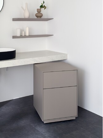 《ピッタラムーブ》は、下部にキャスターが付いた可動式収納です。洗面カウンターの下やワークスペースの下に設置すれば、可動式ワゴン収納として使用することができ、必要に応じて自由に動かせるため便利です。