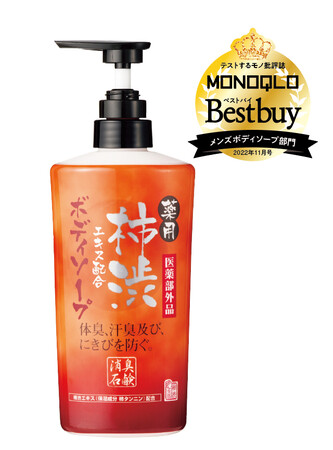 消臭成分として柿タンニン(柿渋)を配合しています。柿タンニンは加齢臭に効果があることが確認されていて、ニオイ検証でも「テスト後にほとんどニオイが残らない」と、その消臭力にプロの太鼓判が押されました。洗浄テストでも、水準以上の皮脂の汚れ落ちを記録し、高評価を獲得。ミントの爽快な香りがあり、洗い上がりもさっぱりし、使用感は好評。最大の強みはやはり強力な消臭力。特に加齢臭が気になり始めた人にオススメします。