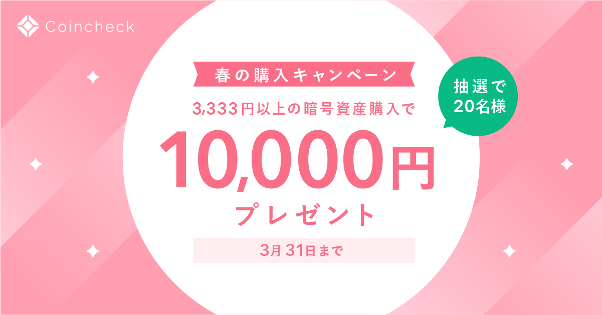 キャンペーン期間中に、Coincheckの販売所において暗号資産を合計3,333円以上購入された方
