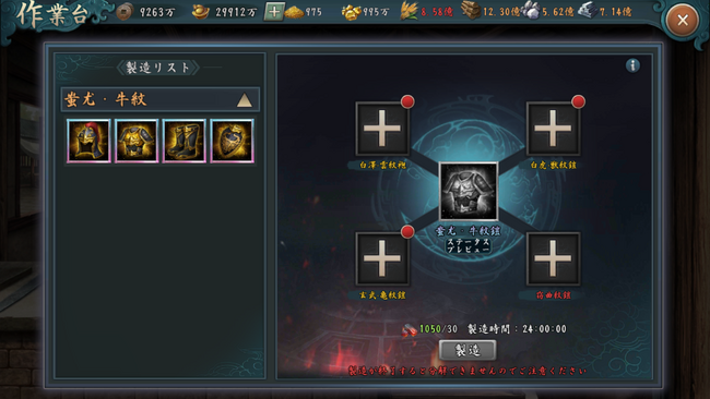 兵装所レベル30で装備製造機能が解放されます。装備製造ではMRまたはUR装備と新たに実装されるアイテム「百錬鋼」を消費してより高ランクのLR装備を製造することができます。