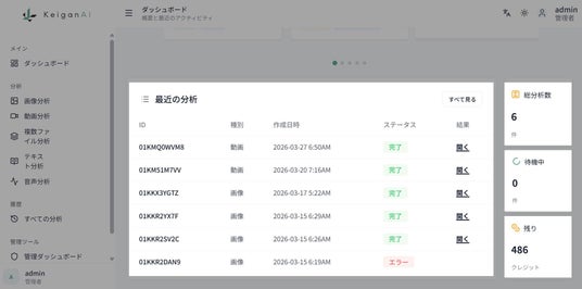 本バージョンでは、組織内での実運用を前提とした「解析ダッシュボード」「ジョブ管理」「クレジット管理」などの管理機能を中心としたUIを全面刷新しました。さらに、アーキテクチャの見直しによるスケーラビリティの向上やレポート印刷機能の追加により、組織での実運用における情報信頼性判断の迅速化と業務効率の向上を実現しました。