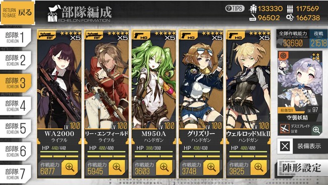 戦術人形は「人力」「弾薬」「配給」「部品」の数を組み合わせて製造することが可能! 戦術人形は銃器の種類による得手不得手があるだけでなく、個々で様々なスキルを持っています。 戦術人形同士の組み合わせを考え、部隊を編成しましょう。