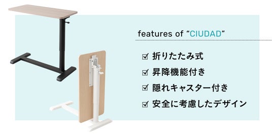 様々なタイプのサイドテーブルがある中、使わないときに折りたためたら良いのに…というお客様の声に応えて開発されました。CIUDADは「こんなのあったらいいな」をカタチにし、より快適な生活をサポートします。