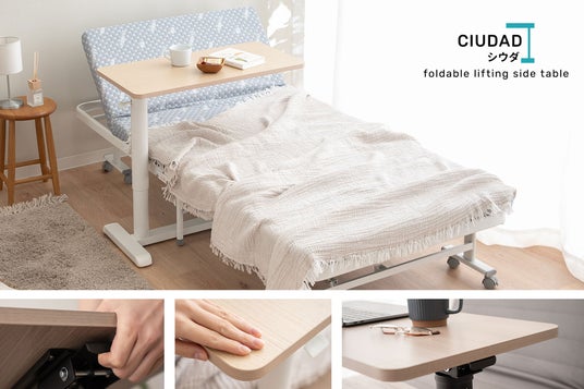 「寝る・座る・たたむ」に専門性を持つ健康家具ブランドEMOORを展開する株式会社エムール(東京都立川市:代表取締役 高橋 幸司)は、2025年4月1日より、しまえるリフティングサイドテーブル【CIUDAD/シウダ】(以下CIUDAD)の販売を開始しました。CIUDADは、デスクワークや読書、食事、介護のシーンなど、 あらゆる場面で活躍する折りたたみ可能なリフティングサイドテーブルです。コンパクトながらも十分な天板サイズを確保し、日常のさまざまなシーンで活躍します。